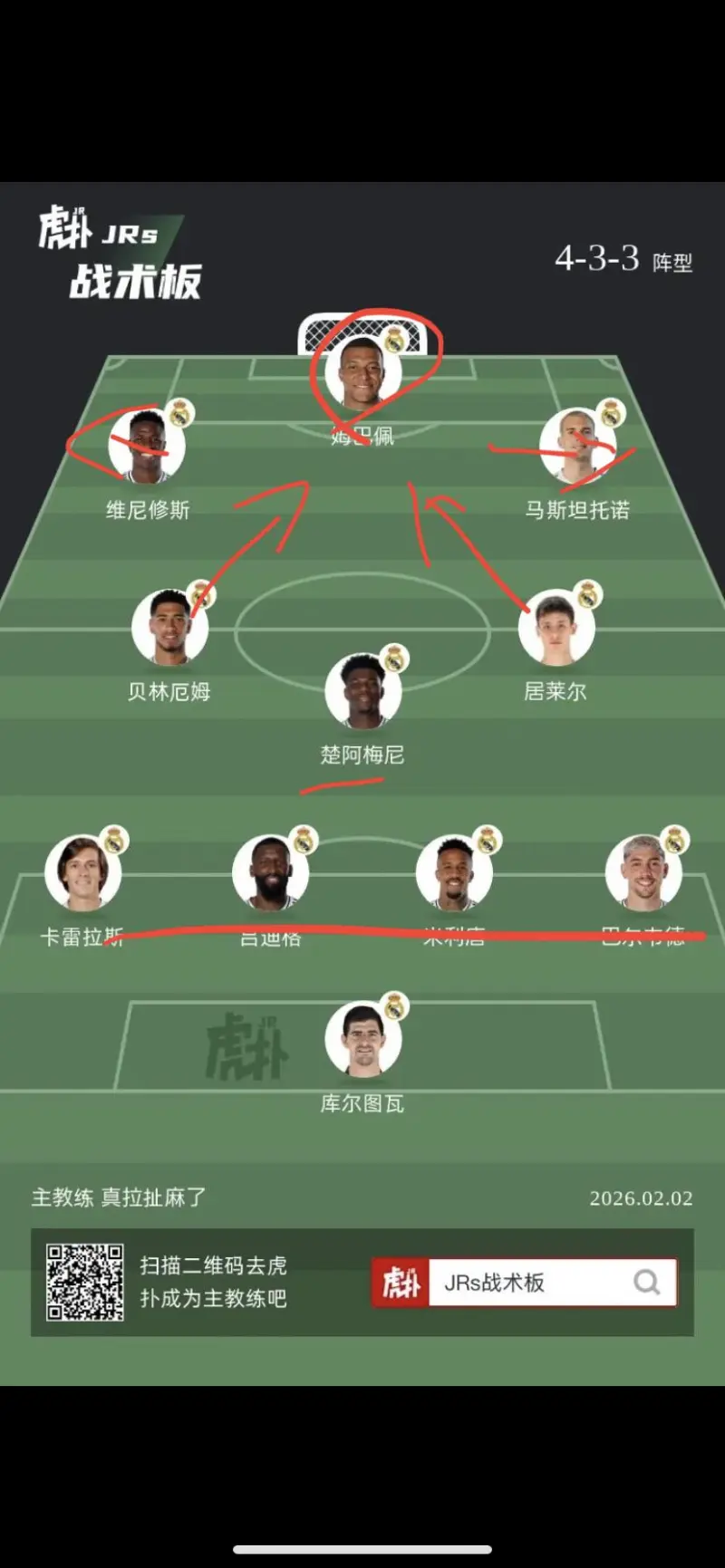 阿韦洛亚(阿隆索)的方案,是右路成强侧,然后姆巴佩甜点,然后贝林、维尼交替进入禁区帮忙扛人的角色。左路也可以类似的对称。。但是问题在于进攻、防守成本高的离谱。